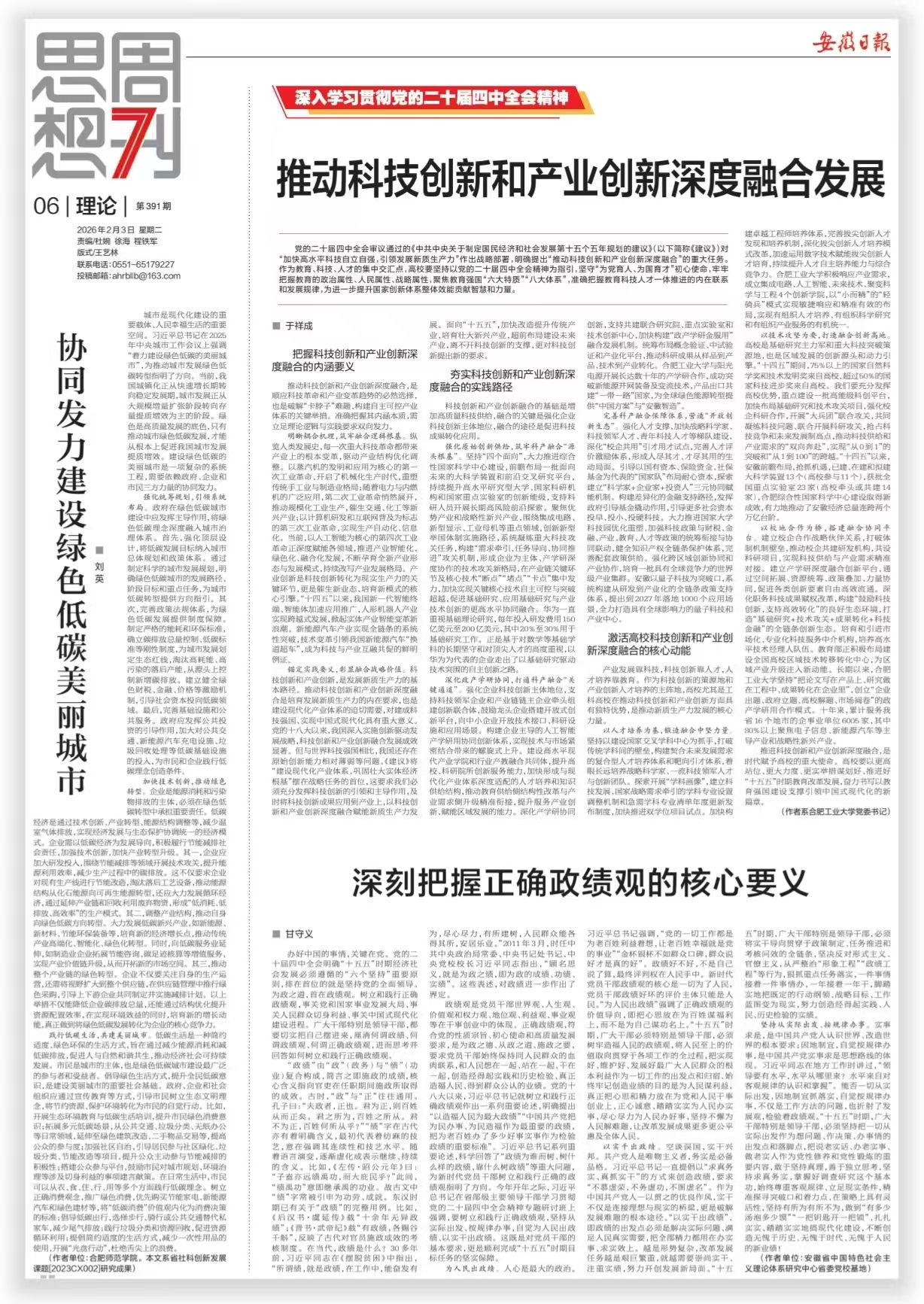 在安徽省“两会”即将召开之际,2月3日《安徽日报》周刊理论版在显著位置刊发校党委书记于祥成署名文章《推动科技创新和产业创新深度融合发展》。文章指出,党的二十届四中全会审议通过的《中共中央关于制定国民经济和社会发展第十五个五年规划的建议》(以下简称《建议》)对加快高水平科技自立自强,引领发展新质生产力”作出战略部署,明确提出“推动科技创新和产业创新深度融合”的重大任务。合肥工业大学坚持以党的二十届四...