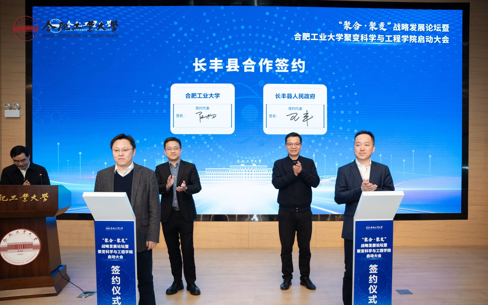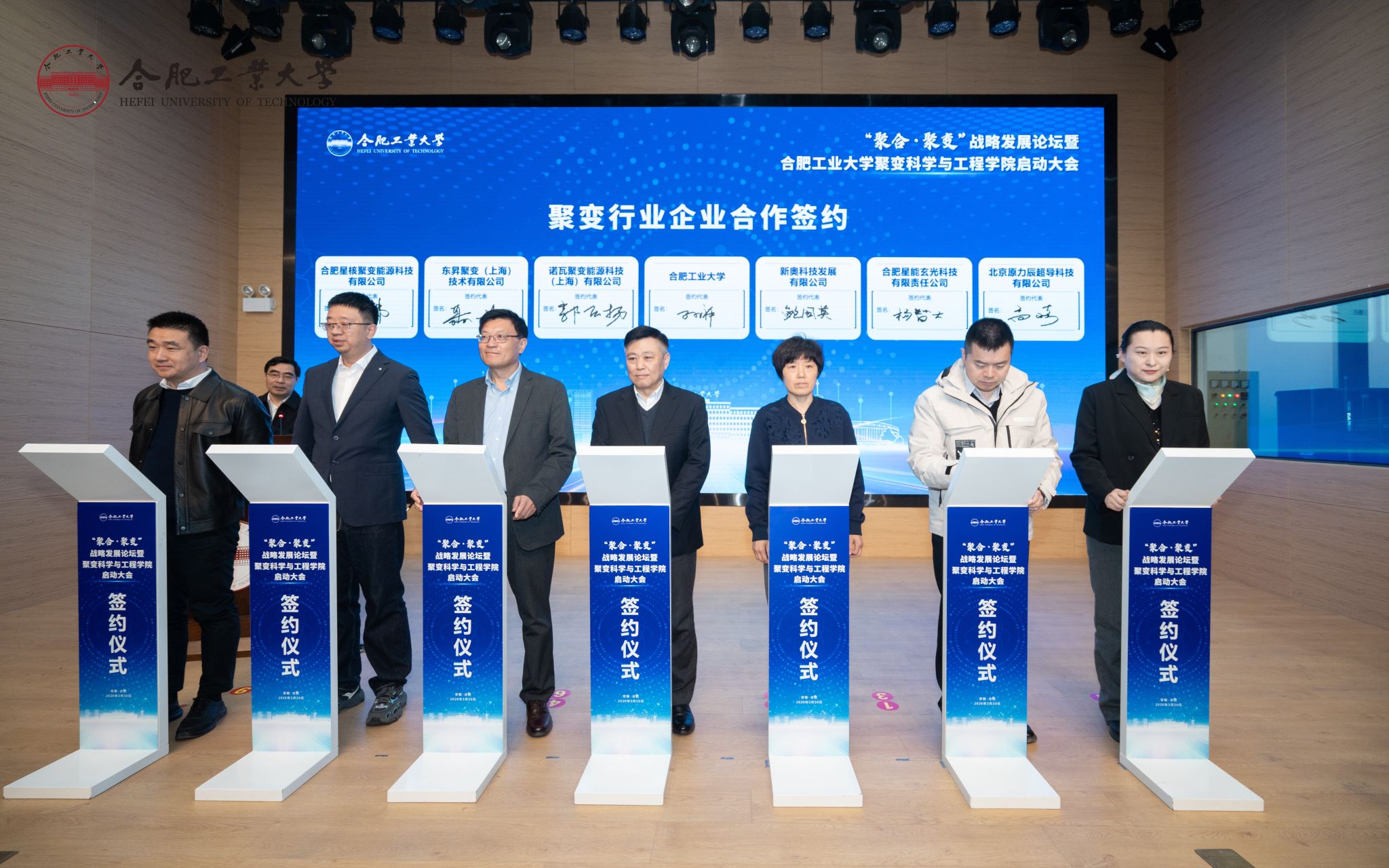 随后,合肥工业大学、中国科学院合肥物质科学研究院、聚变新能(安徽)有限公司、合肥综合性国家科学中心能源研究院共同签署四方聚变人才培养协议。学校与长丰县人民政府签署校地合作协议。聚变科学与工程学院与东昇聚变(上海)技术有限公司、新奥能源研究院、诺瓦聚变能源科技(上海)有限公司、合肥星能玄光科技有限责任公司、合肥星核聚变能源科技有限公司、北京原力辰超导科技有限公司等六家聚变领域企业进行合作签约。